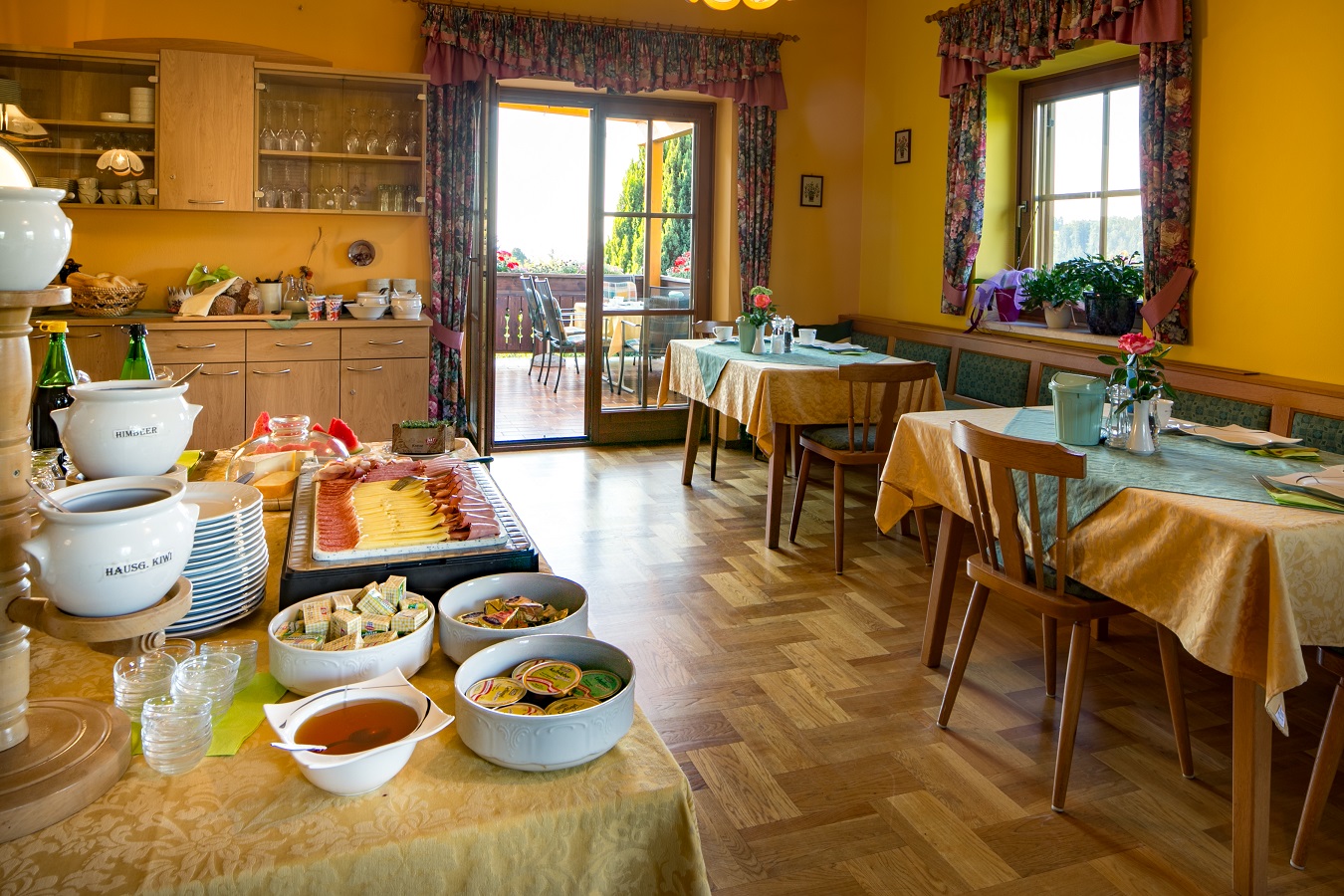 Im einladend gestalteten Speiseraum erwartet die Frühstücksgäste